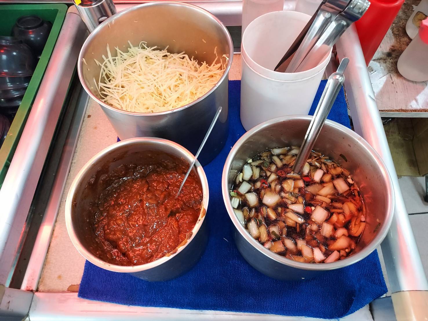 業者向衛生局說明,營業結束後醬料桶會收進冰箱並覆蓋保存,但為避免再度出現蟲害,將於9日展開全店消毒與專業除蟲作業。