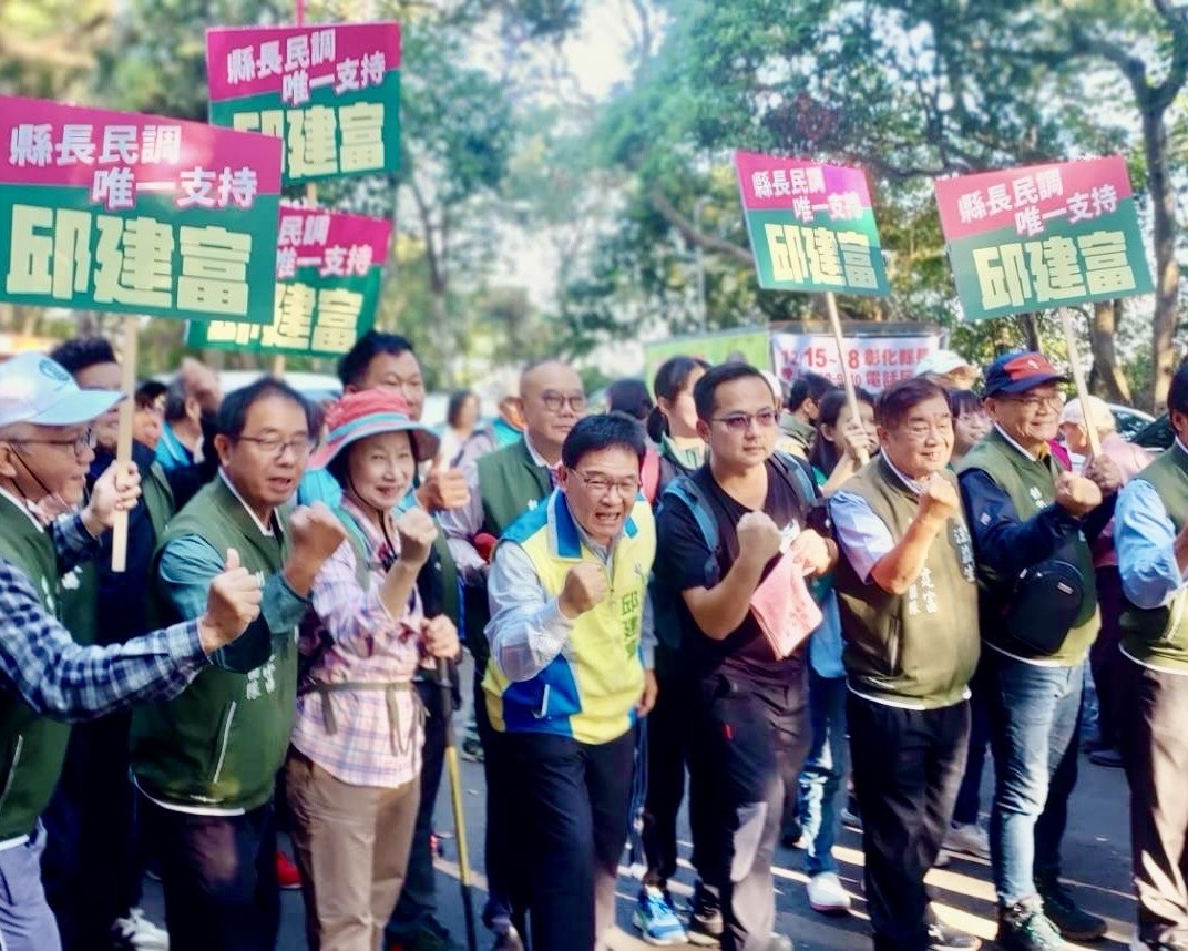 彰化市前市長邱建富則信心滿滿,除勤跑南北彰外,也推出「五吉幸福」政策,內容涵蓋長者照顧、育兒支持、青年發展、托育量能及青年安居等五大方向及各項縣政建設藍圖,13日晚間並舉行團結大會,在民調前衝刺。