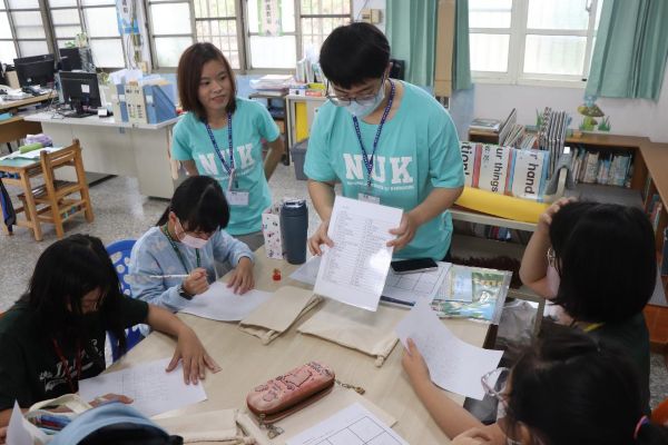 活動內容由高雄大學西語系師生教學團隊共同設計,規劃情境式英語語句任務、主題創意手作與口語發表等學習關卡。小學伴們在大學伴引導下,從詞彙辨識、語句組合到上台介紹作品,逐步完成各項挑戰,在過程中累積使用英語表達的經驗。