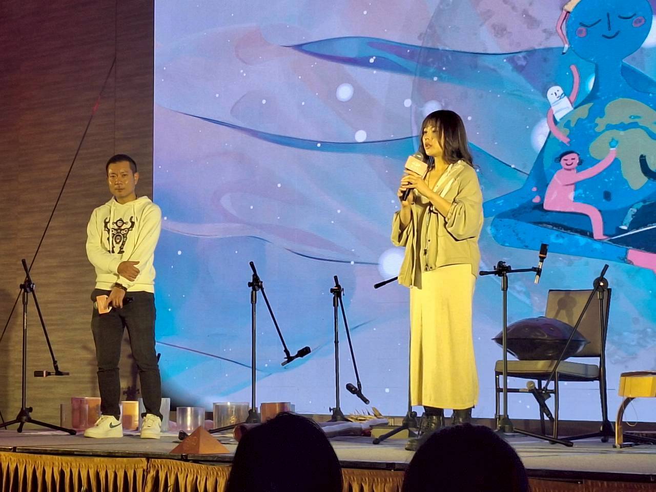 Aiya心樂園創始人姜姜(右)上台說明音樂會活動理念 / 圖 記者昶勝現場拍攝