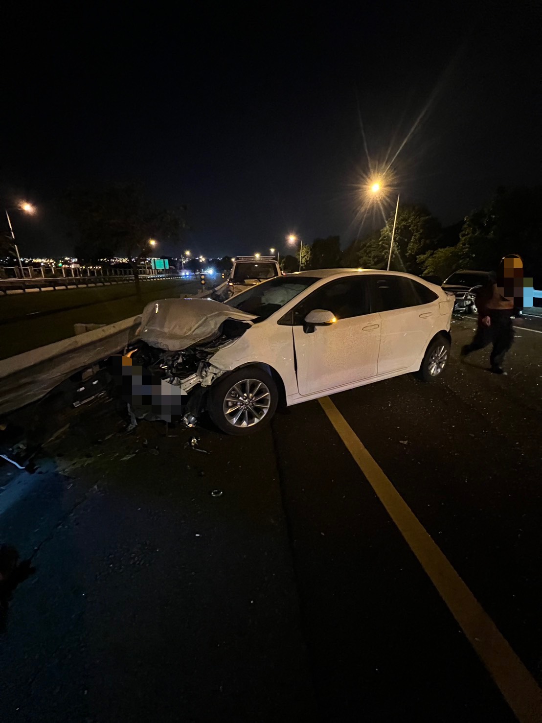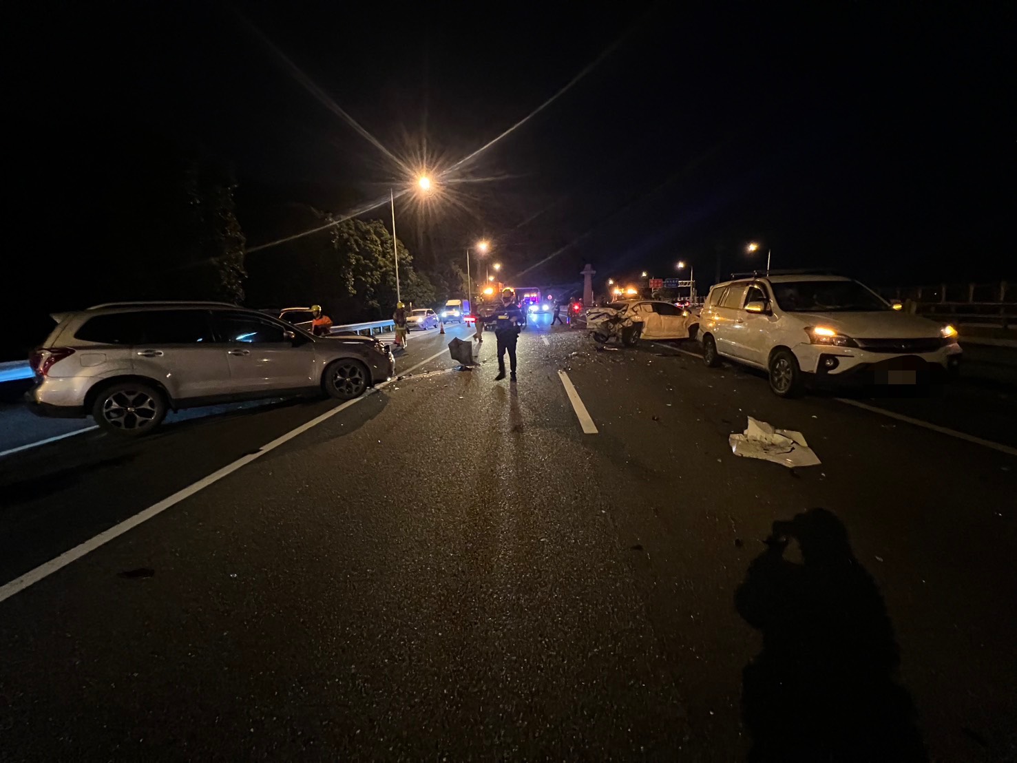 現場尚未清理 ,17時49分左右,41歲徐姓男子駕駛自小客車經過,再與黃男駕駛之自小客車發生碰撞,現場無人受傷、駕駛酒測值均為零,因正值下班交通尖峰時段,現場車流一度回堵5公里,肇事原因待調查釐清。
