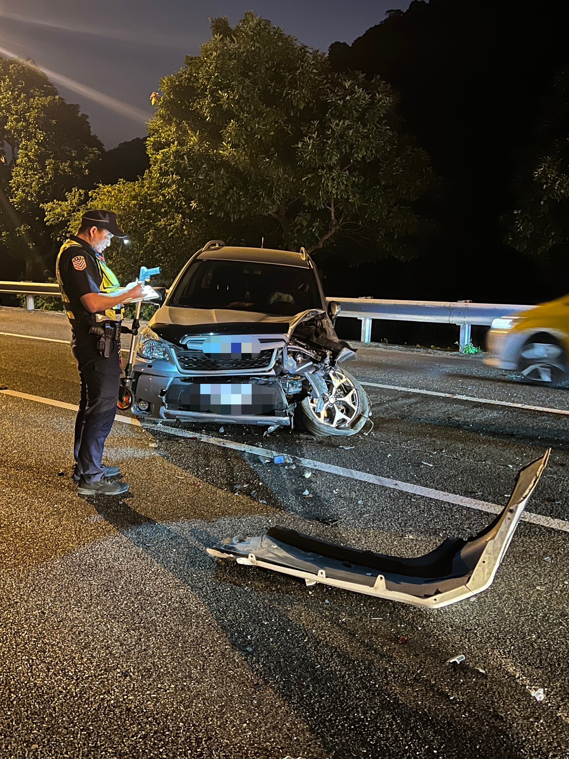 國道警察第九大隊呼籲駕駛人如不慎發生事故,可撥打110或1968求助,並依指示儘速駛離主線車道,以預防二次事故。