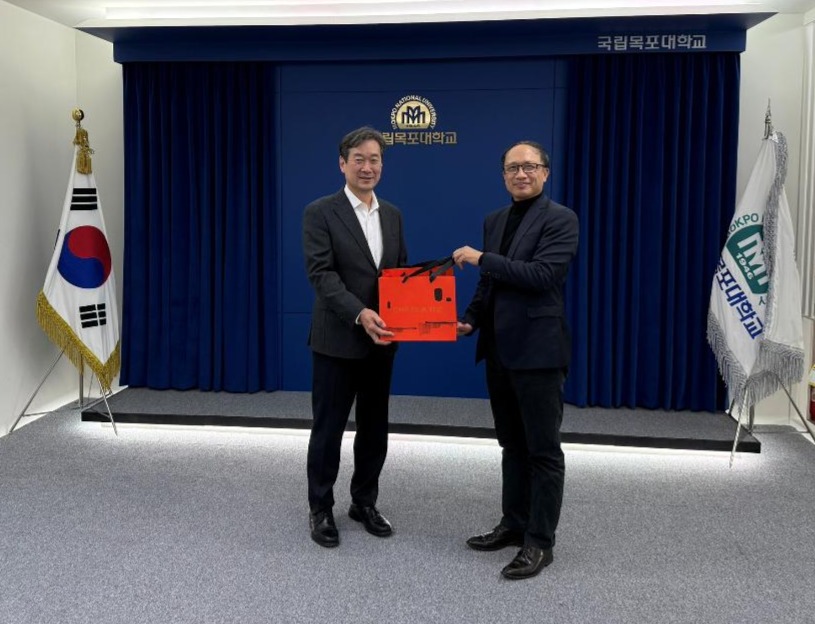 圖3、韓國國立木浦大學宋河哲校長(左)致贈紀念品予臺灣風訓公司盧展猷董事長(右)。
