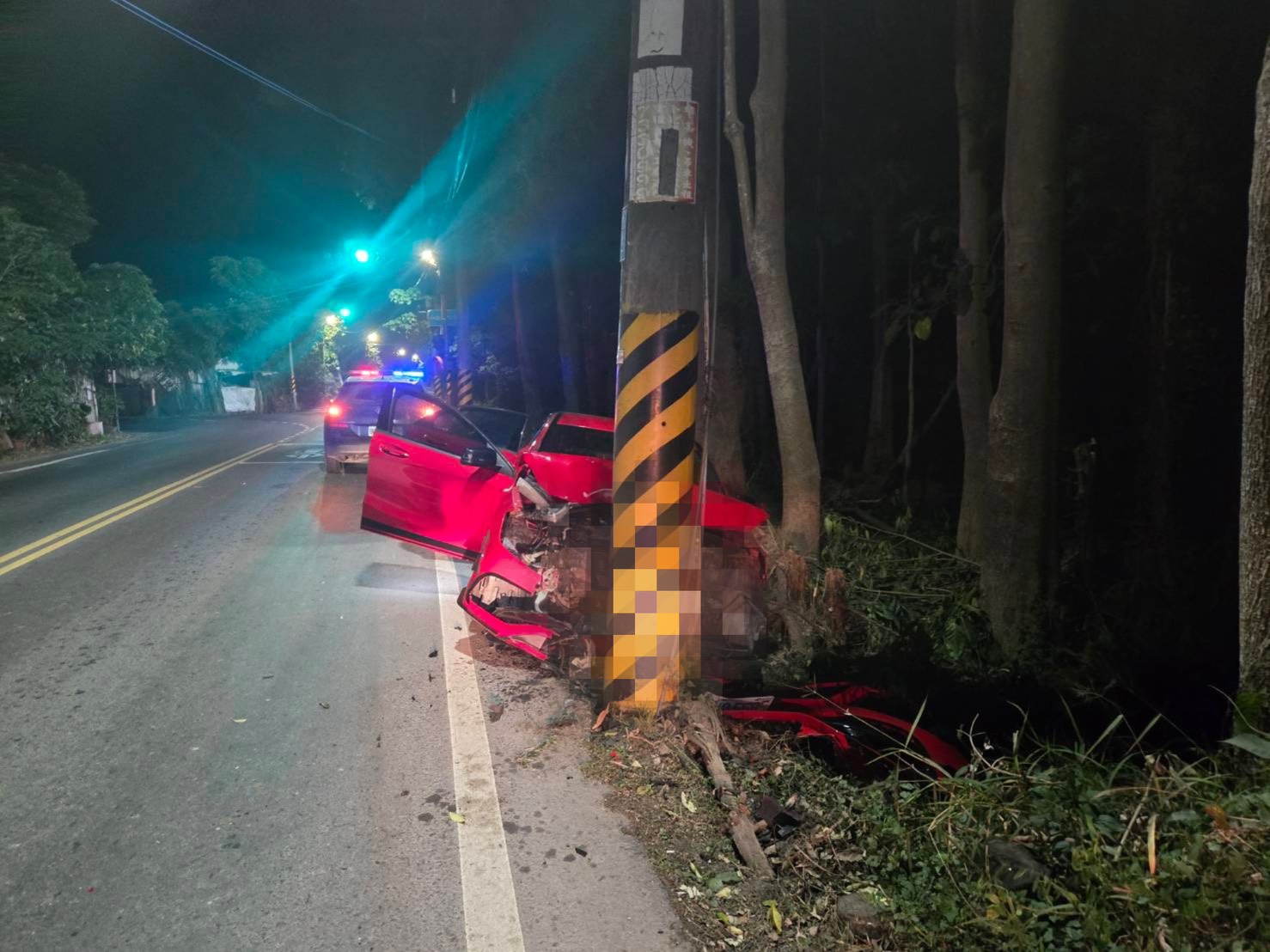 凌晨自撞電桿人卻走了 橋頭通燕路事故 女駕駛去向成謎.(圖/警方提供)