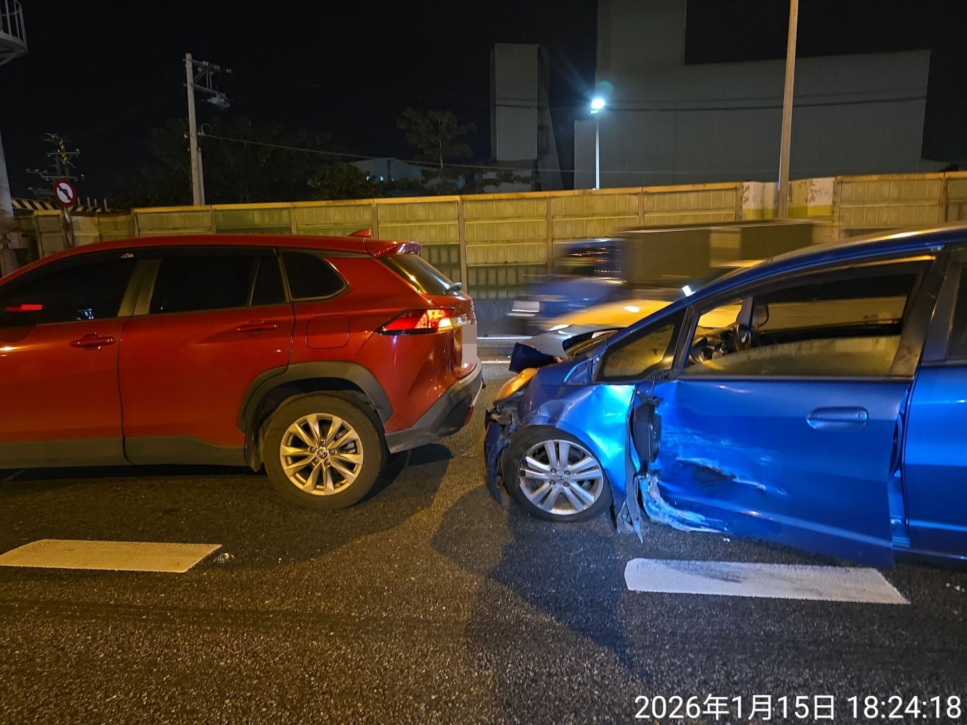 警方調查,23歲陳姓男子駕駛小客車行經該路段時,疑似在排隊車陣中不當向左變換車道,先與77歲王姓女子駕駛的小客車發生碰撞。陳男車輛隨後向右偏移,又接連撞上排隊中的兩部小客車;王女的車輛則因撞擊力道過大,失控翻覆在外線車道,過程中再與37歲吳姓男子所駕駛的小客車發生碰撞,形成5車連環事故。