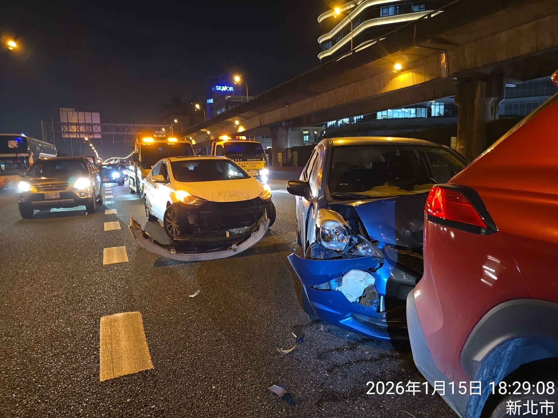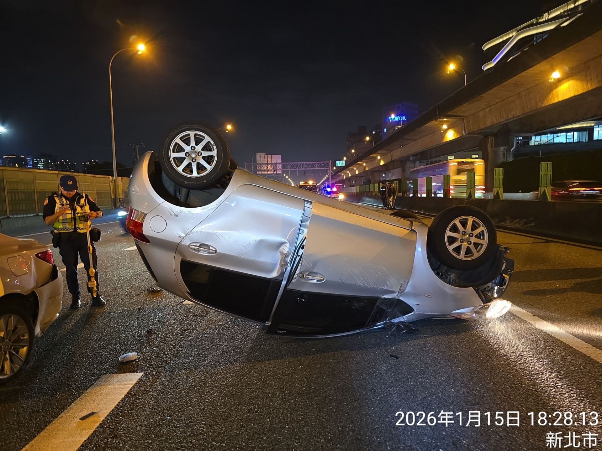 【Lai傳媒、記者爆料網/林千允/新北報導】下班尖峰前夕,國道驚傳連環事故。國道警察局勤務指揮中心昨(15)日晚間6時左右接獲通報,國道一號北向13.7公里汐止路段發生5部車追撞事故,其中一輛小客車當場翻覆,場面一度相當驚險,警方立即派遣巡邏車前往處理。