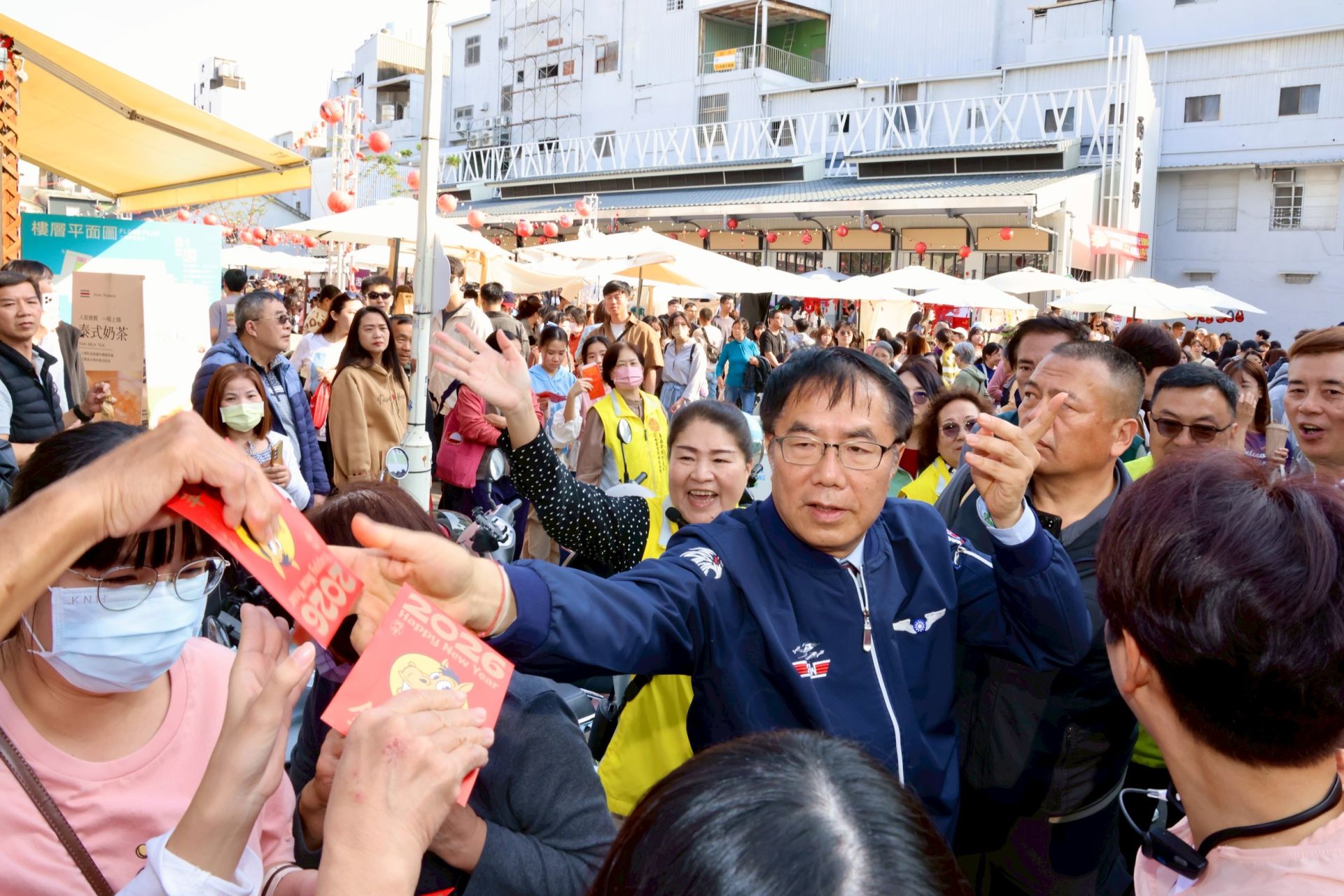 ▲市長黃偉哲逐一向民眾發送迎春紅包,親切寒暄問候,傳遞新春祝福,現場民眾踴躍排隊參與。(新聞處 提供)