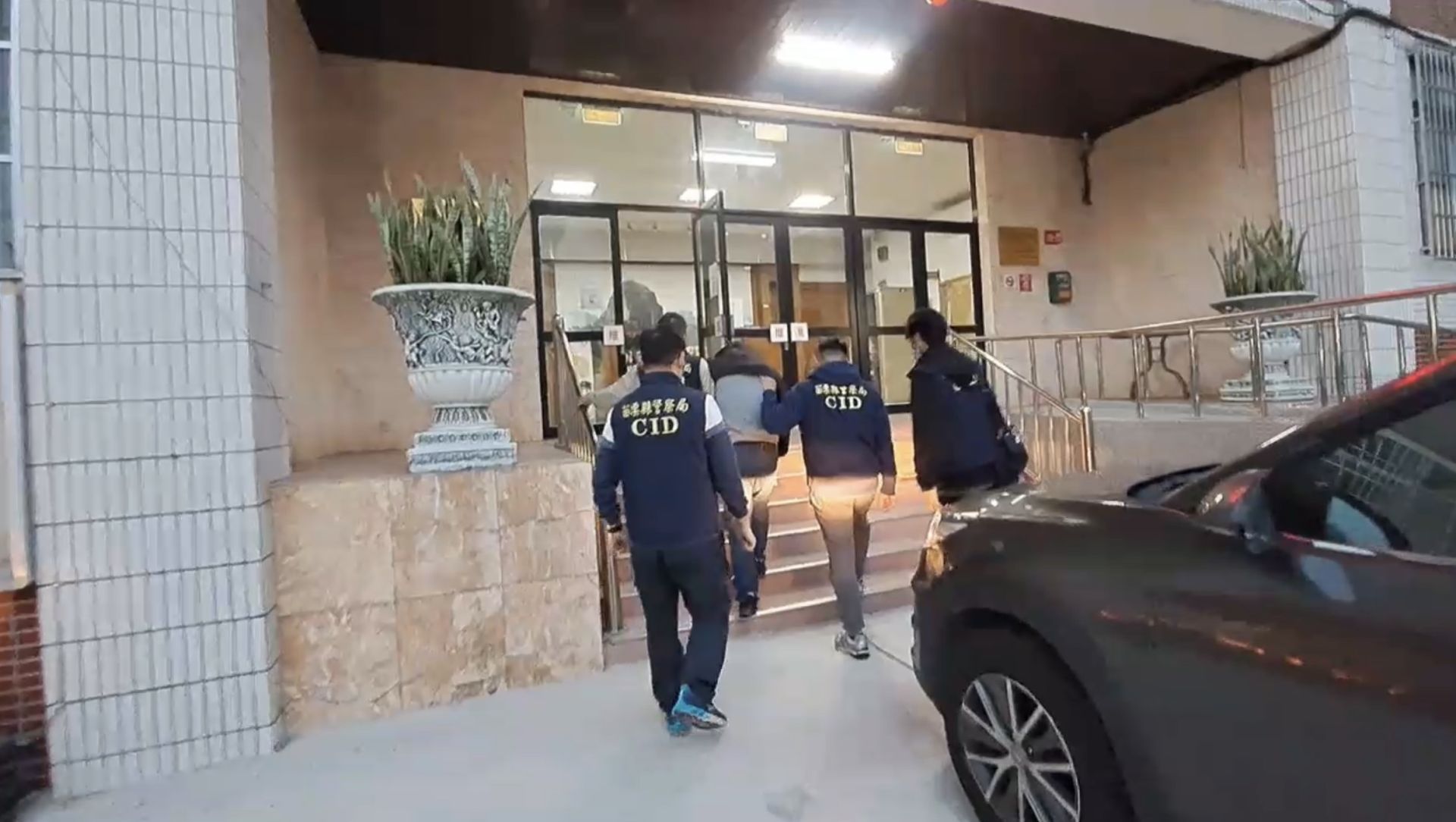 嫌犯葉姓男子被大湖分局員警帶回偵訊。翻攝畫面