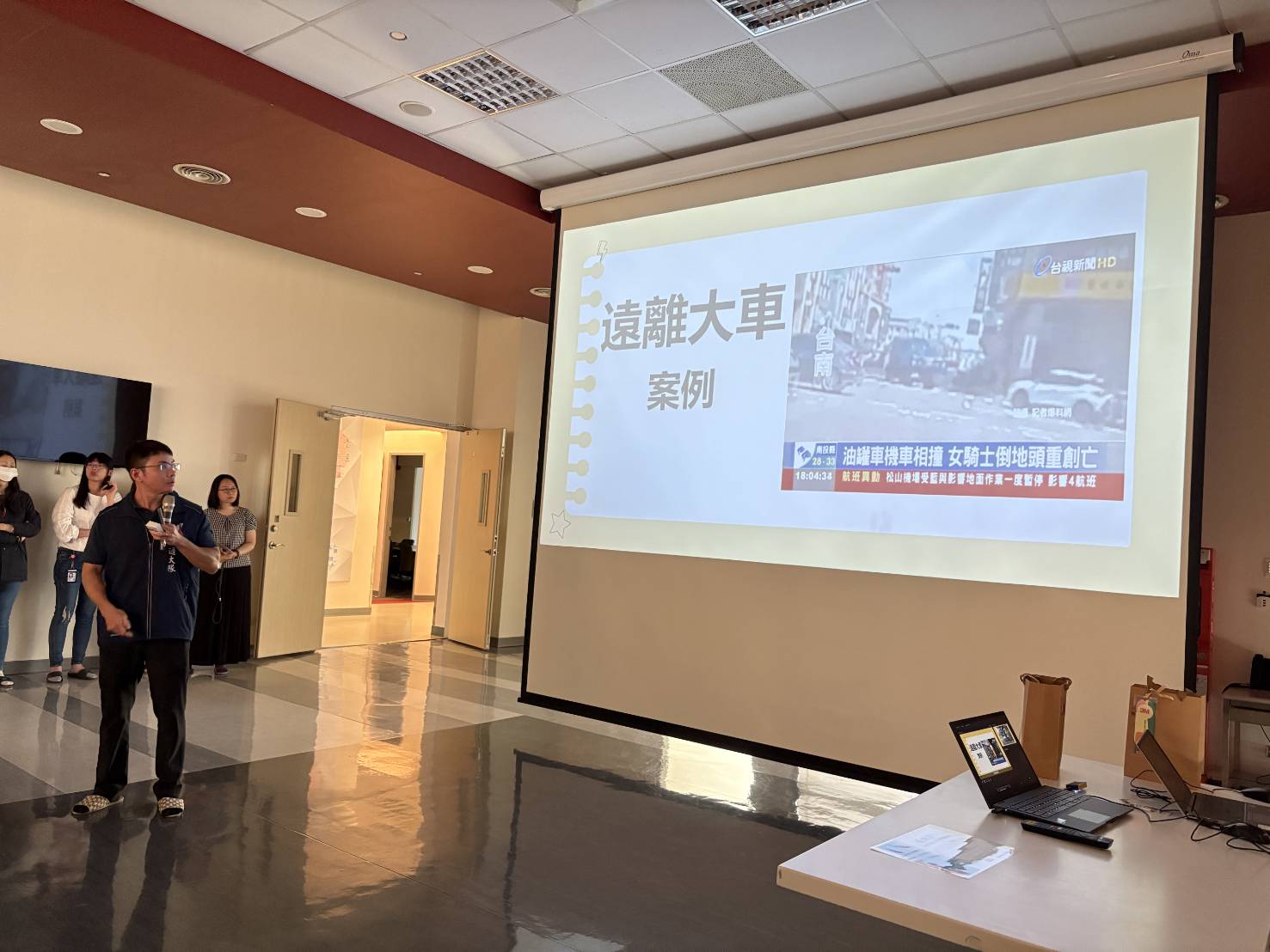 交通警察大隊大隊長黃宗仁表示,感謝3M光電公司重視員工交通安全,舉辦交安宣導系列活動,有鑑於南科園區通勤車流繁忙,大型車頻繁進出,為守護大家的用路安全,交通大隊會持續走入企業宣導,提醒駕駛人注意視野死角與內輪差,上下班途中不搶快,與大型車保持安全距離,路上多一分謹慎,家人就多一分安心,共同建立防禦駕駛觀念,一起守護「安全出門、安全回家」的交通文化。