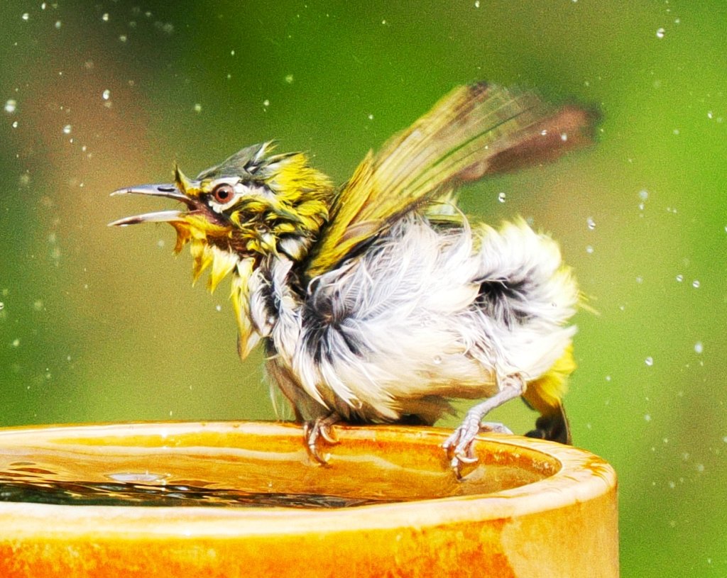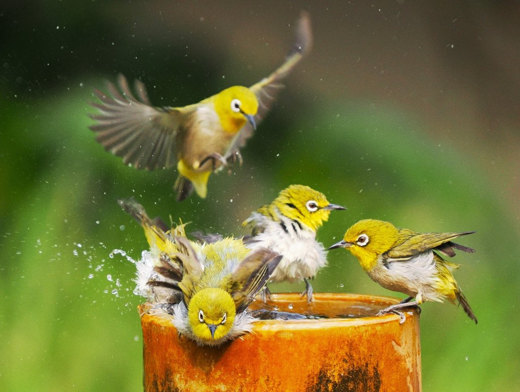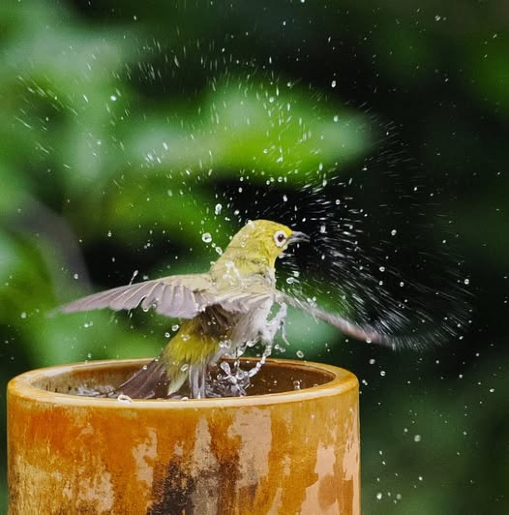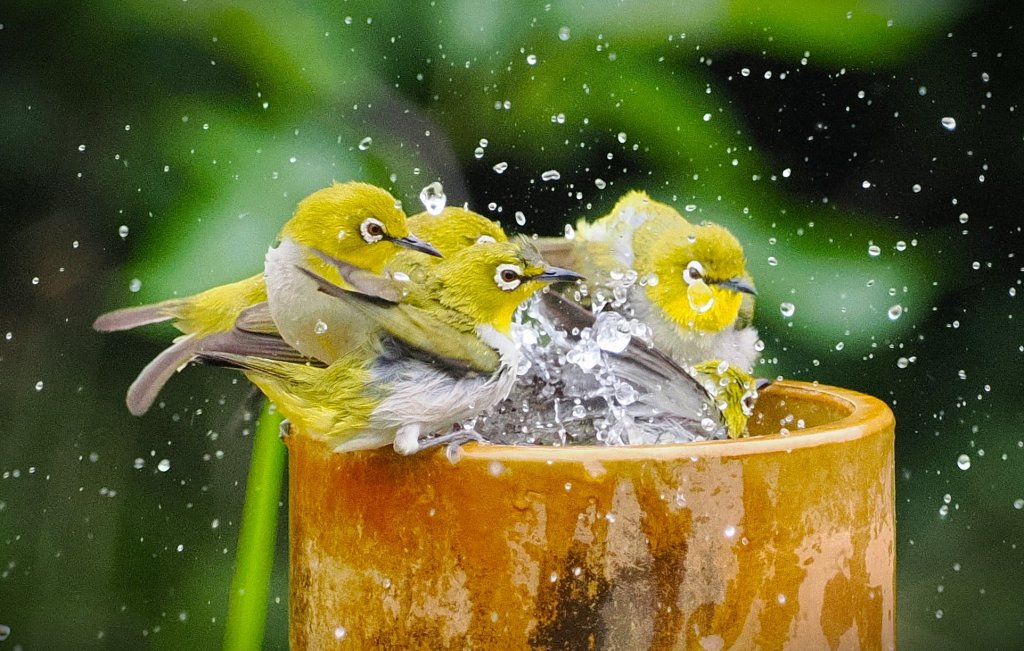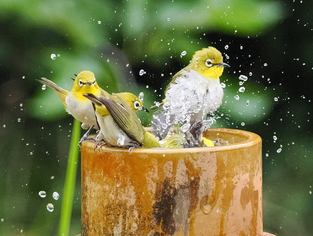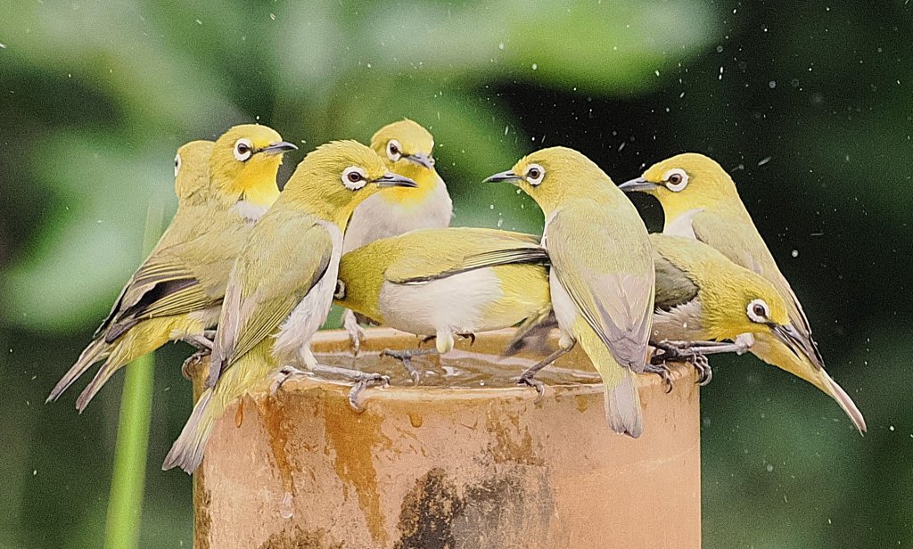 鳳山衛武營公園深處,一廢棄許久的半截朝天的水管頭,積水吸引了大群野鳥來此洗澡......