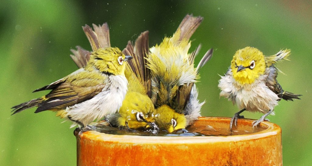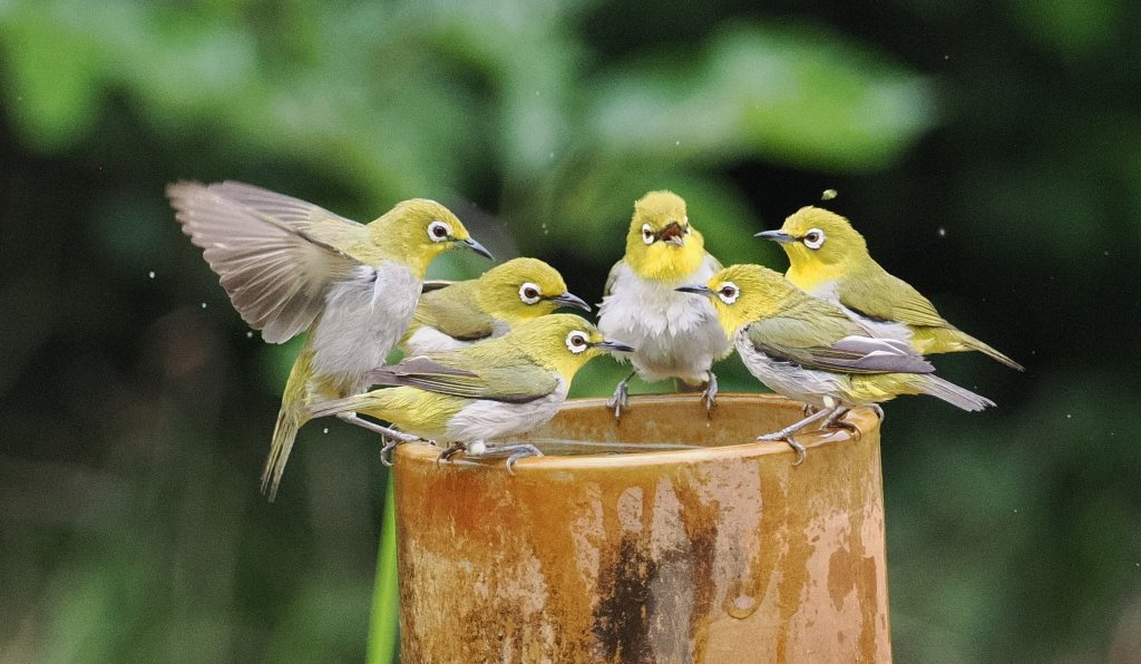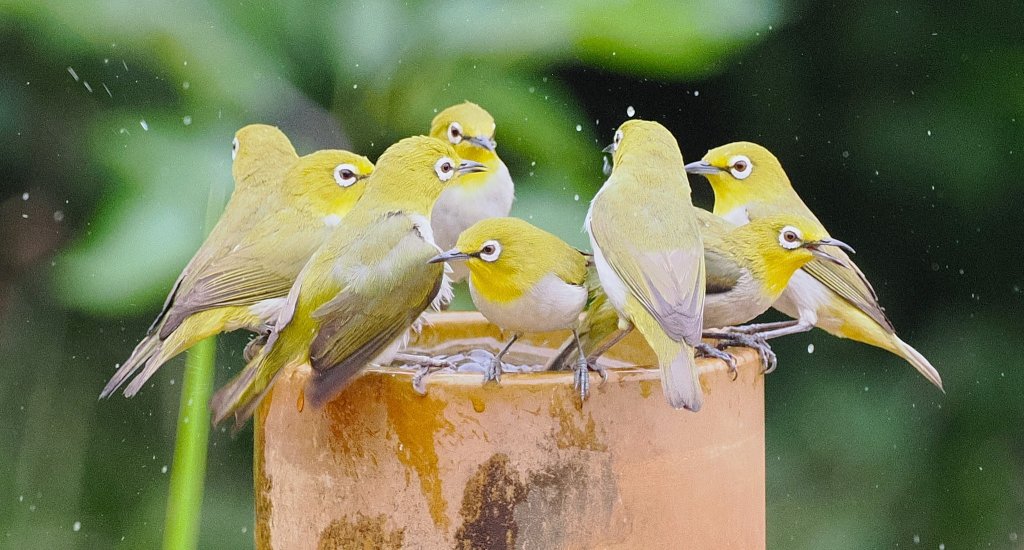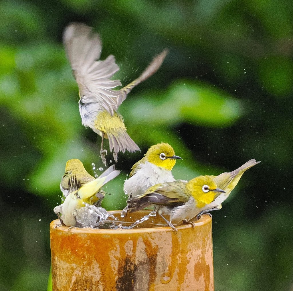 其中, 最可愛的是一小群古錐的綠繡眼,綠繡眼天性坦小活潑好動,來到這裡,彷彿上了天堂,爭先恐後的活潑動作,引人發出莞爾的微笑~~~~