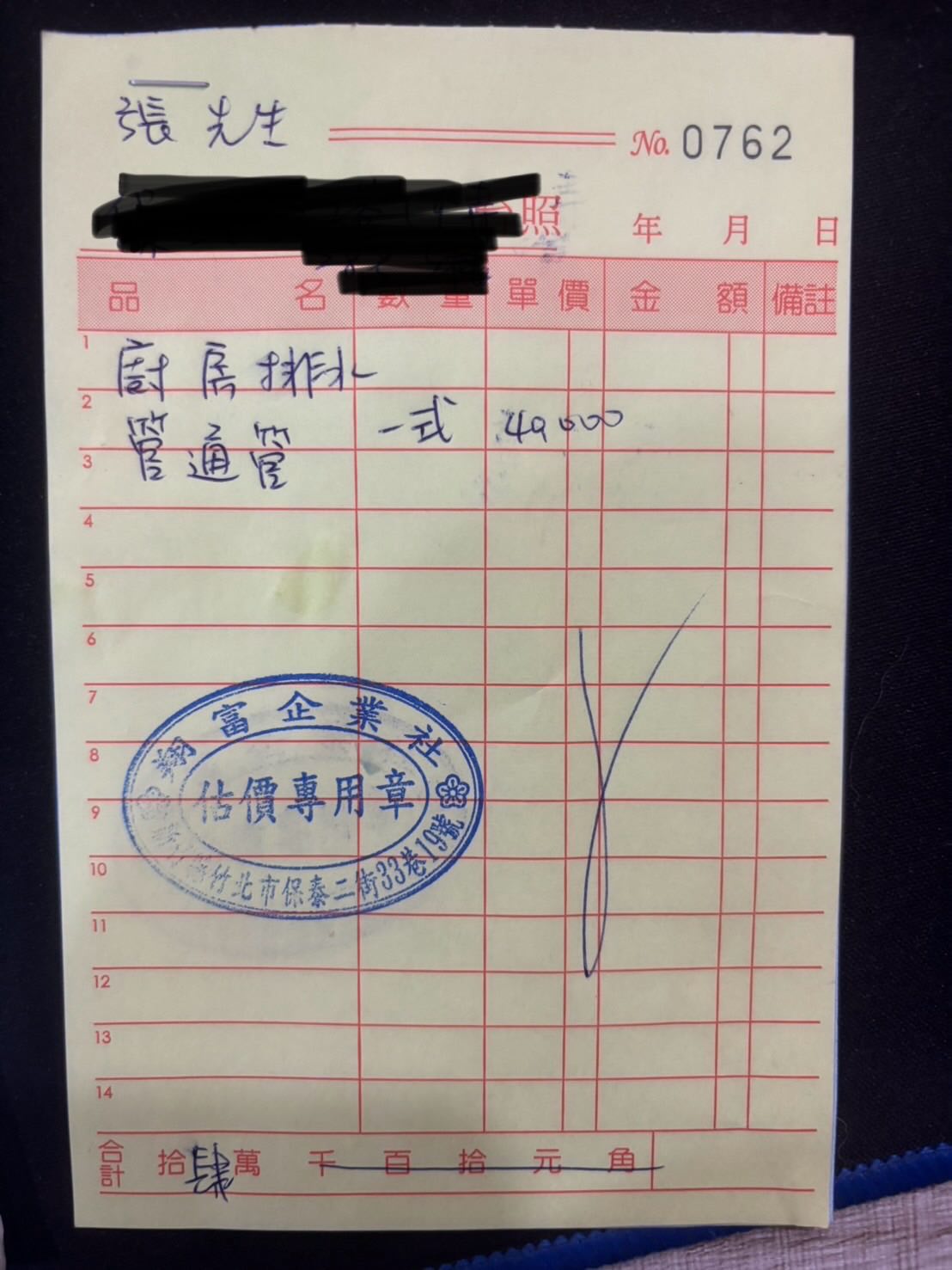 有民眾指出,自己是一般住家水管阻塞,找人通水管沒想到費用要4萬元,認為不合理通報消保會。