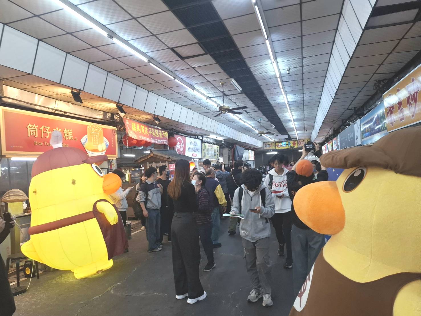 今(19)日晚間,臺南市夜市超高人氣吉祥物「夜奇鴨」,走進小北商場 (小北觀光夜市),辦理「夜奇鴨」見面會,現場民眾合照打卡即送周邊小飾品;同時市府為提升夜市經濟,現場發放夜市銅板抵用券,小北商場發展協會更加碼支持,在聖誕節前夕,向民眾傳播歡樂,推廣享受夜市美食及歡喜購物。