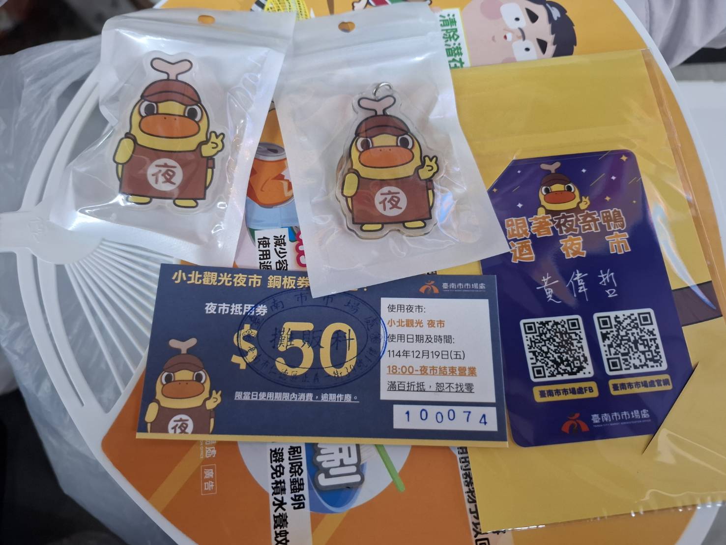 ▲現場有發放銅板抵用券,並讓民眾合照打卡而獲得限量夜奇鴨小飾品。(市場處 提供)